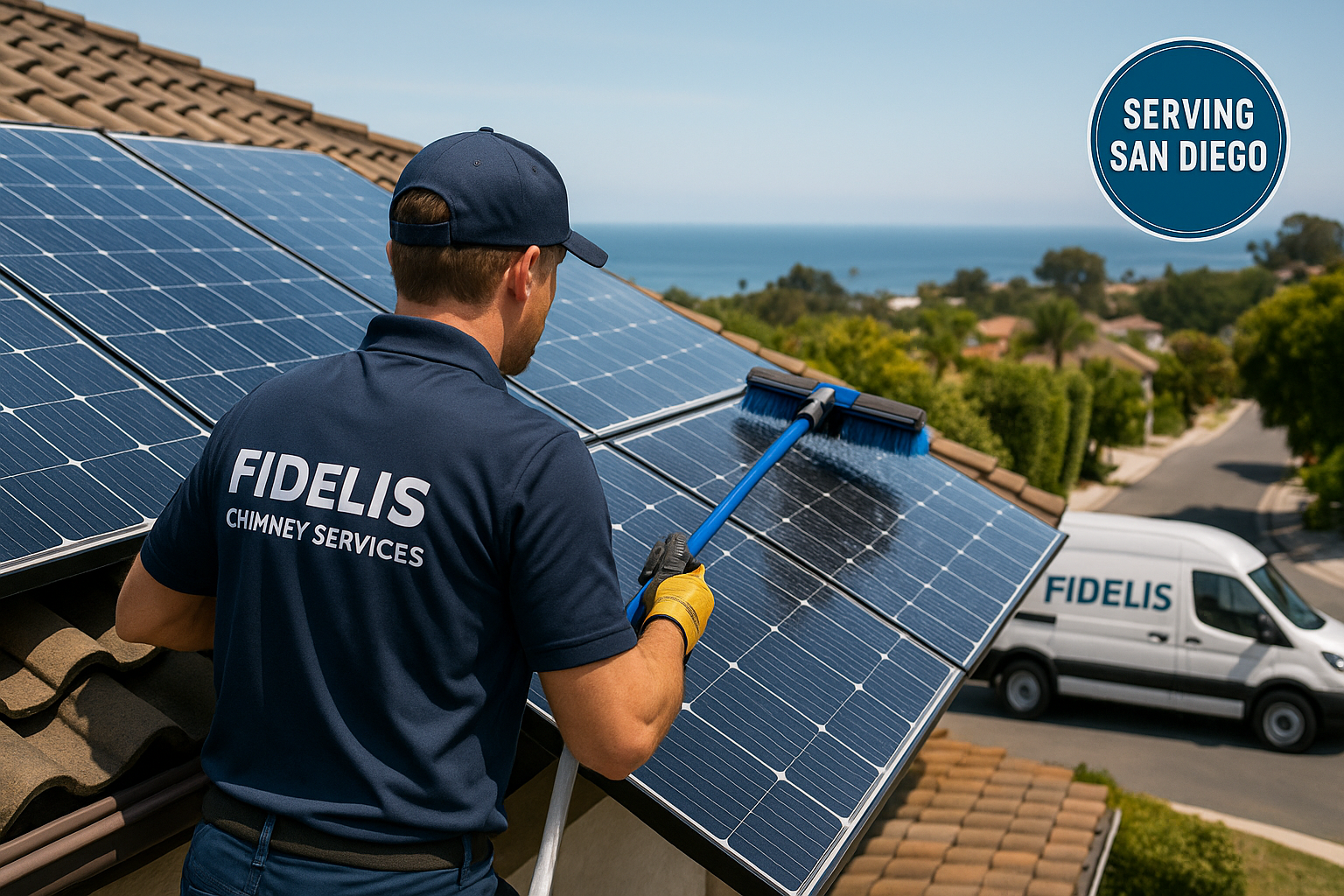 Restore output with spot-free deionized water and soft brushes that protect coatings/warranties. Before/after photos included. Ideal for coastal San Diego dust, pollen, and bird droppings.