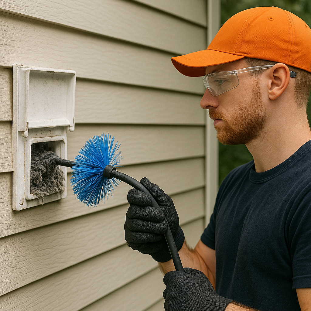 Full-run rotary cleaning from dryer to exterior hood, then airflow verification. Reduces fire risk, shortens dry times, and extends appliance life—especially on long or kinked vent runs.